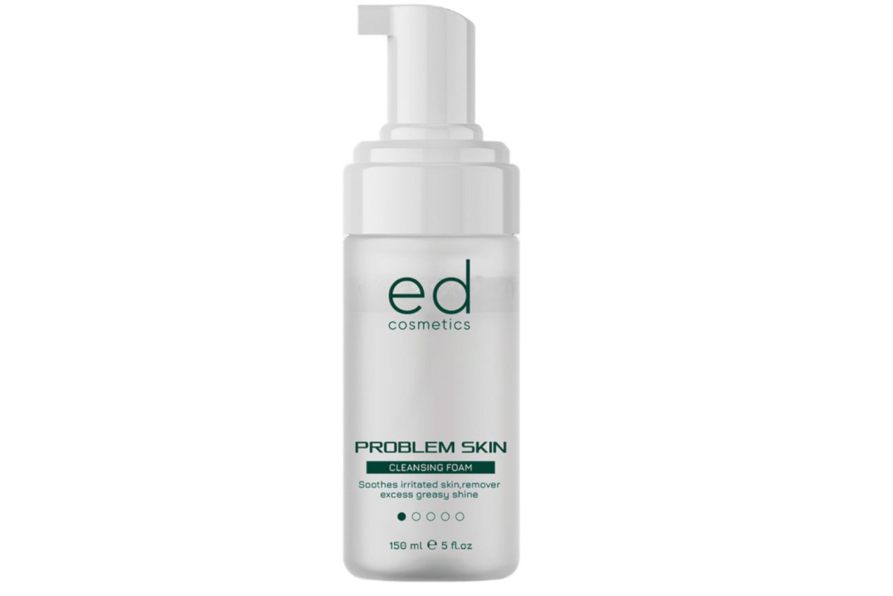 ED Cosmetics Очищувальна пінка Problem Skin Cleansing Foam 150 мл – це м’який, але ефективний засіб для щоденного очищення проблемної та схильної до подразнень шкіри обличчя. Формула пінки делікатно видаляє забруднення, надлишки себуму та макіяж, не порушуючи природного гідроліпідного балансу. Пінка допомагає підтримувати чистоту, комфорт і доглянутий вигляд шкіри без відчуття сухості.