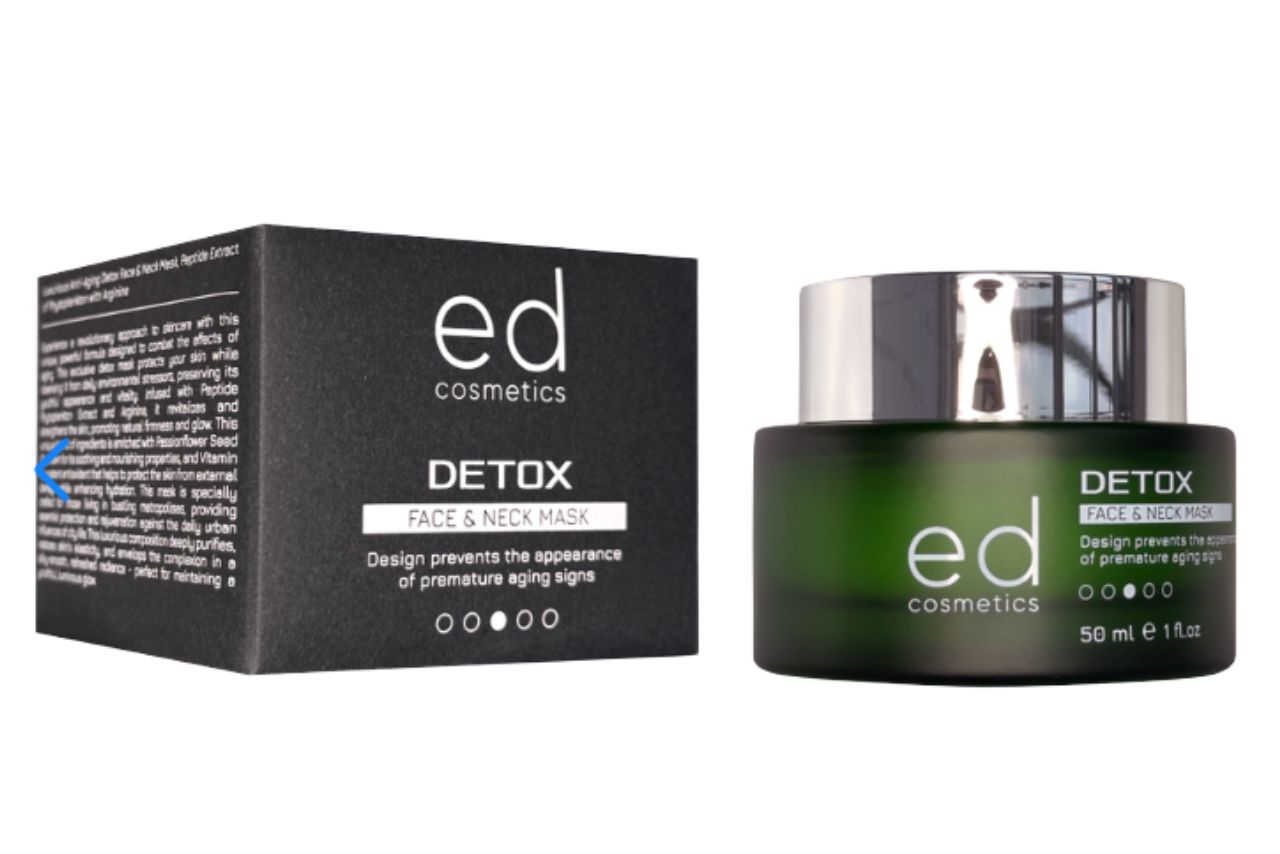 ED Cosmetics Detox Mask – професійна детокс-маска для обличчя та шиї, створена для глибокого оновлення шкіри після міських забруднень, стресу та оксидативного навантаження. Маска допомагає нейтралізувати негативний вплив навколишнього середовища, підтримує свіжість і природне сяйво та сприяє профілактиці передчасних вікових змін.