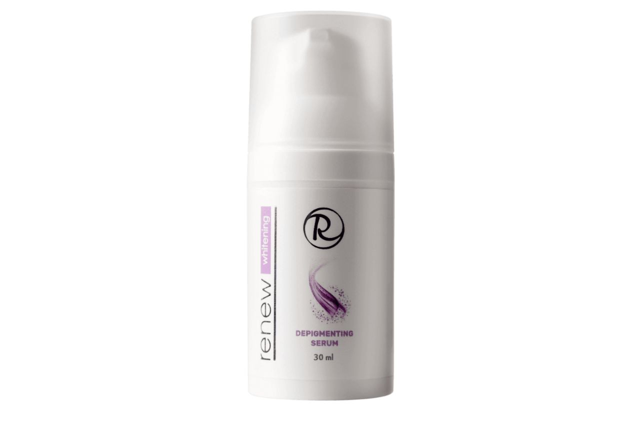 Renew Protective Depigmenting Serum – високоефективна відбілювальна сироватка для зменшення гіперпігментації та освітлення шкіри. Призначена для боротьби з усіма видами пігментних плям (окрім печінкових) на обличчі, шиї, руках та інших ділянках тіла. Завдяки активній дії засіб розщеплює надлишковий меланін, пригнічує активність меланоцитів і нормалізує процес утворення пігменту, зберігаючи при цьому природний захист шкіри.